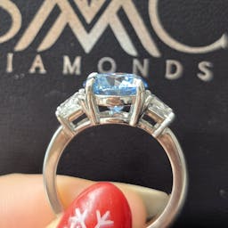 Setting: 3 stone setting, 4 prong, cathedral setting