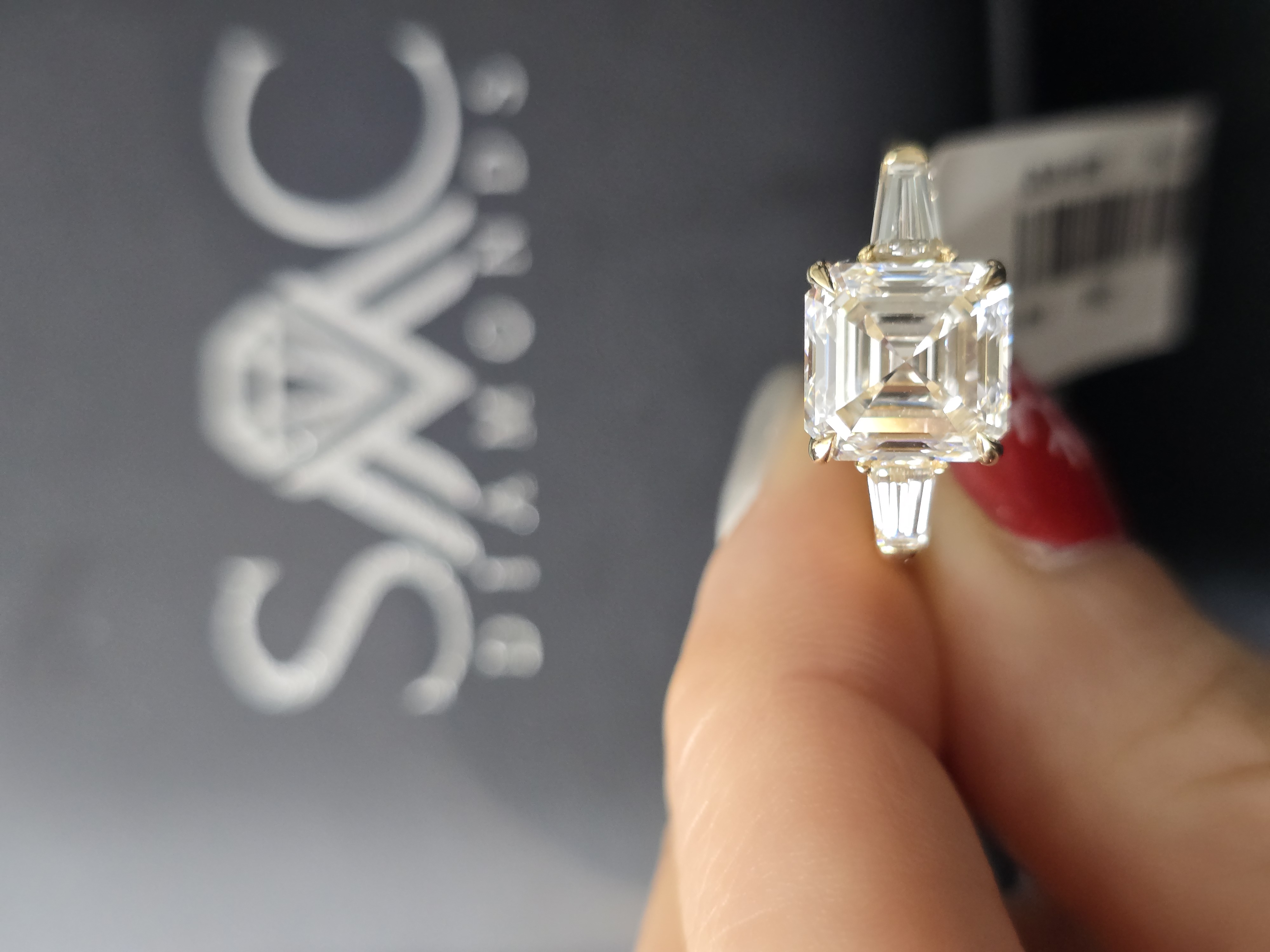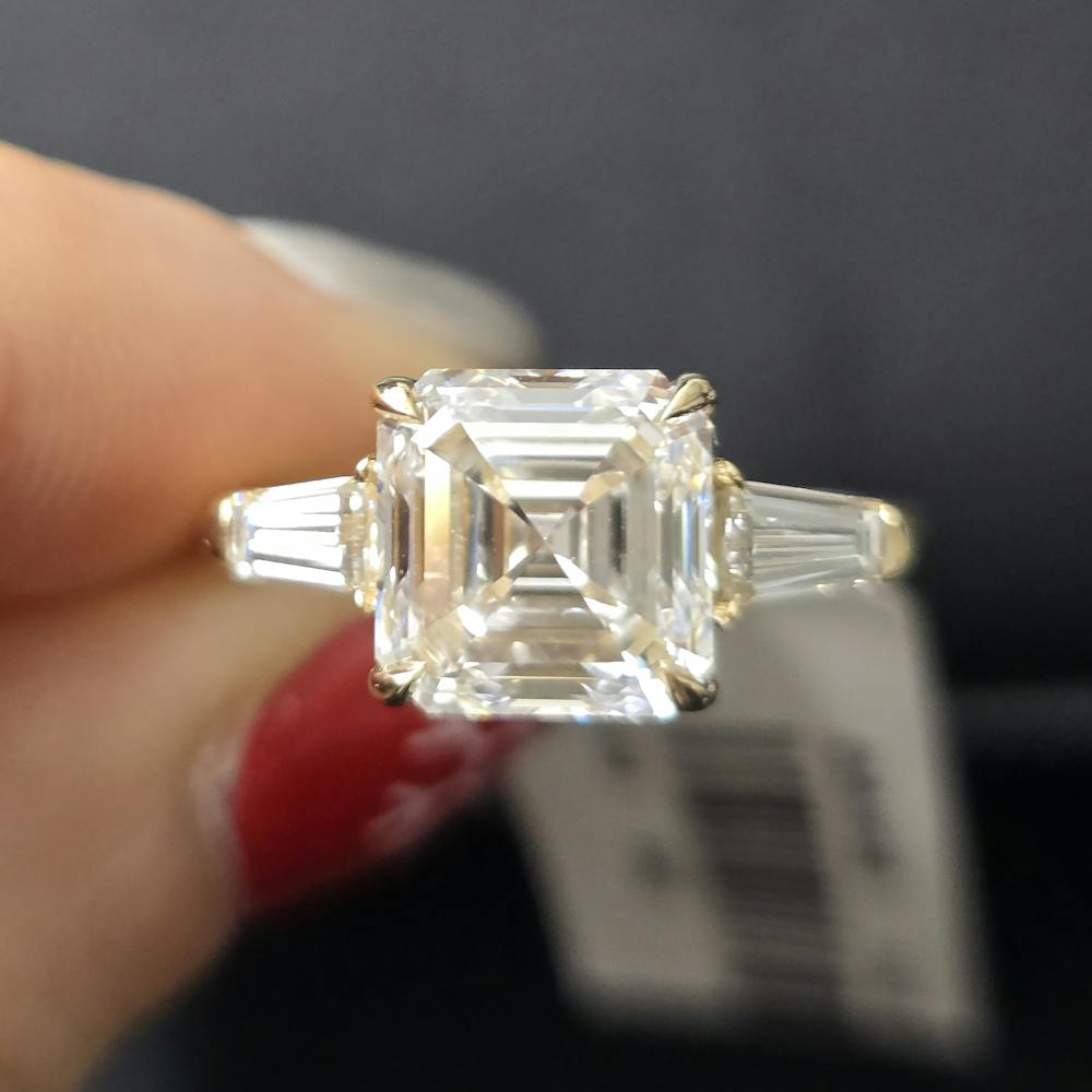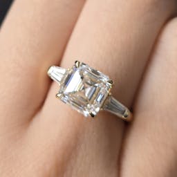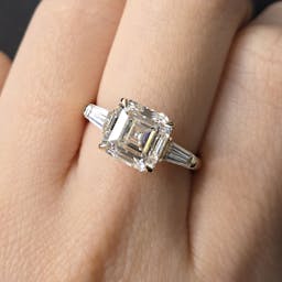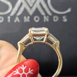 Setting: 4 prong, 3 stone setting with 2 baguette stone on side