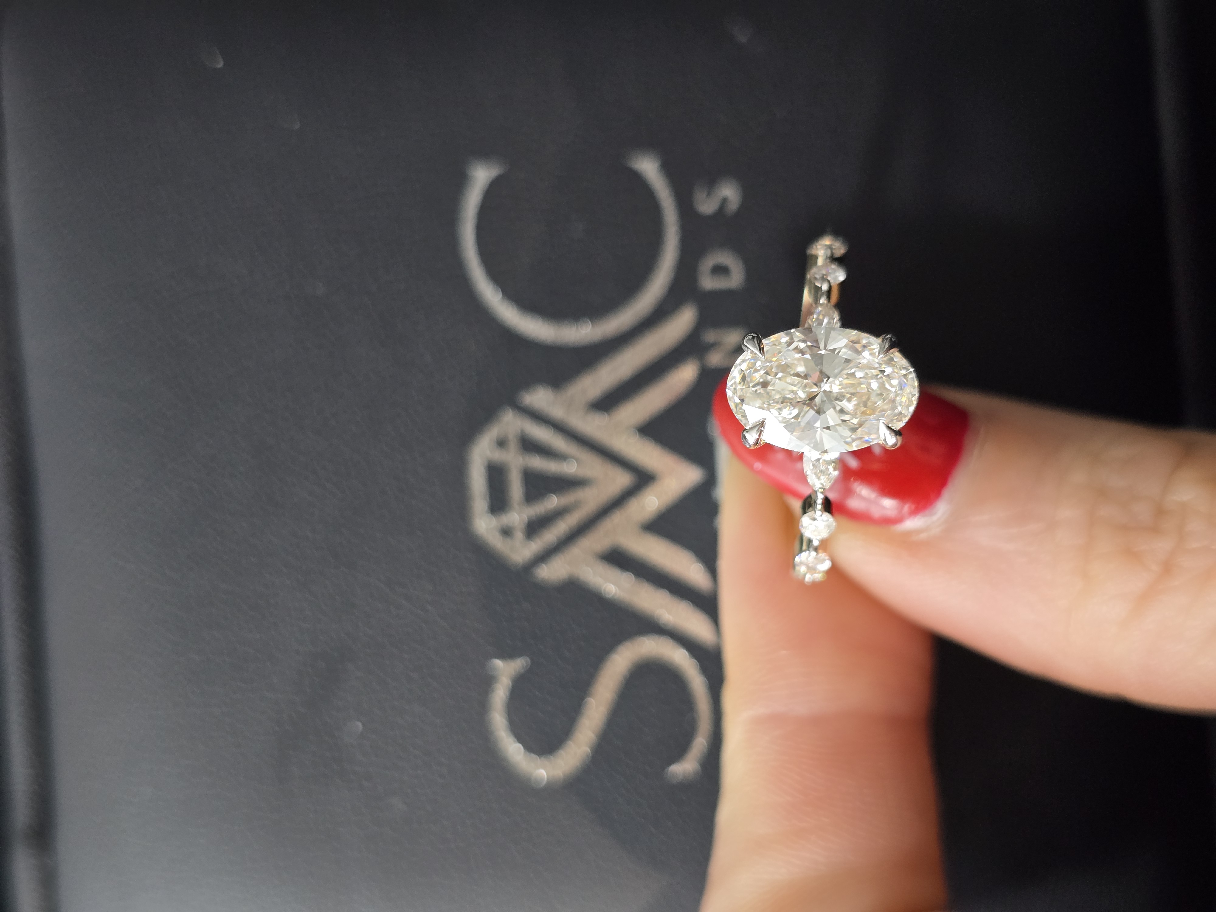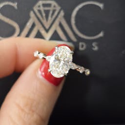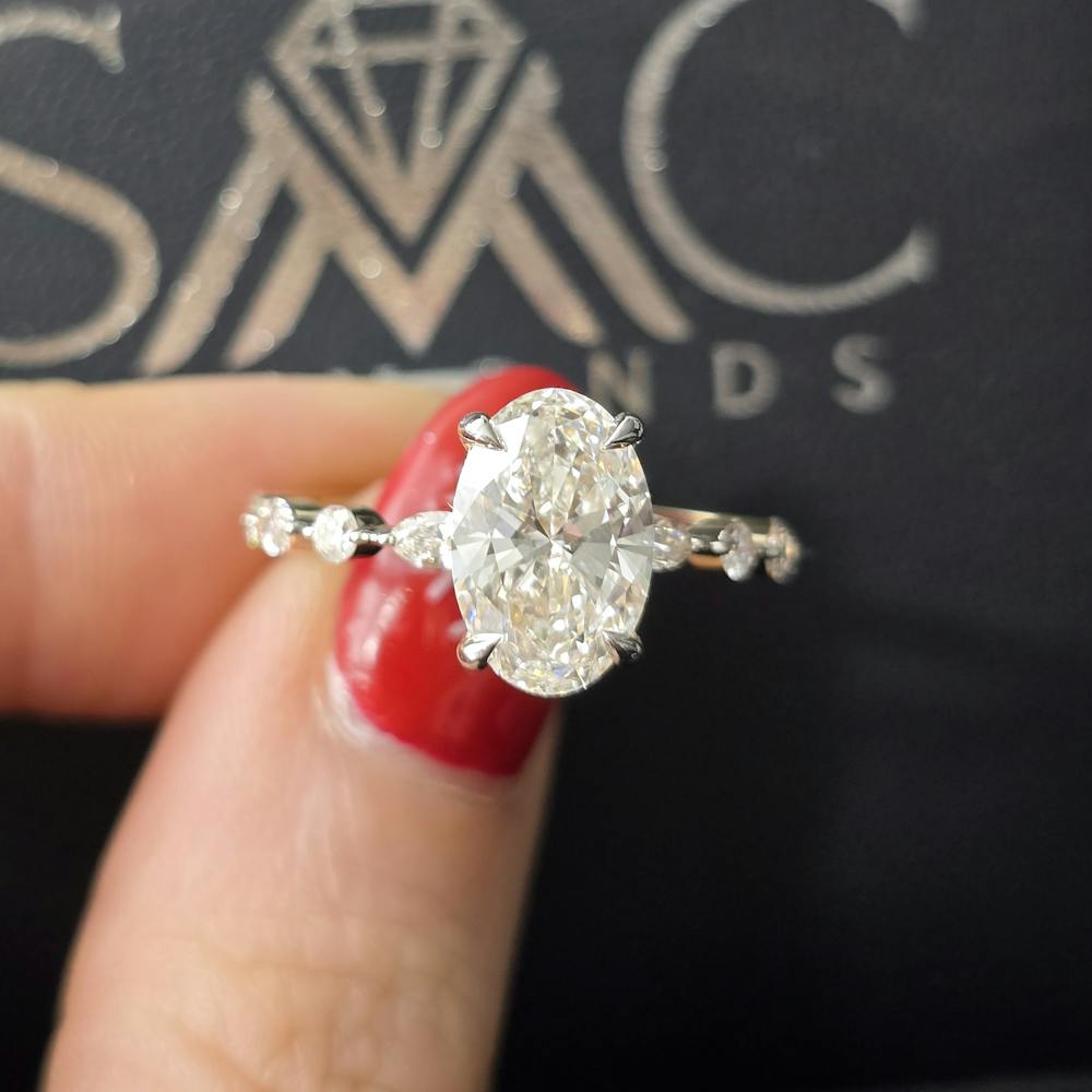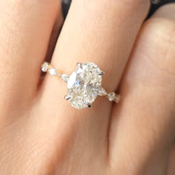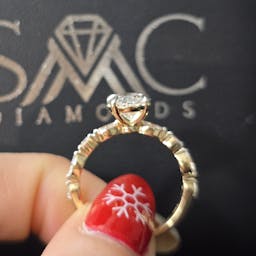 Setting: 4 prong, pave band 50% marquise mix round, duo tone