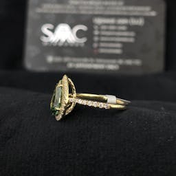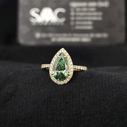 Setting: Halo, 4 prong, pave band 50%