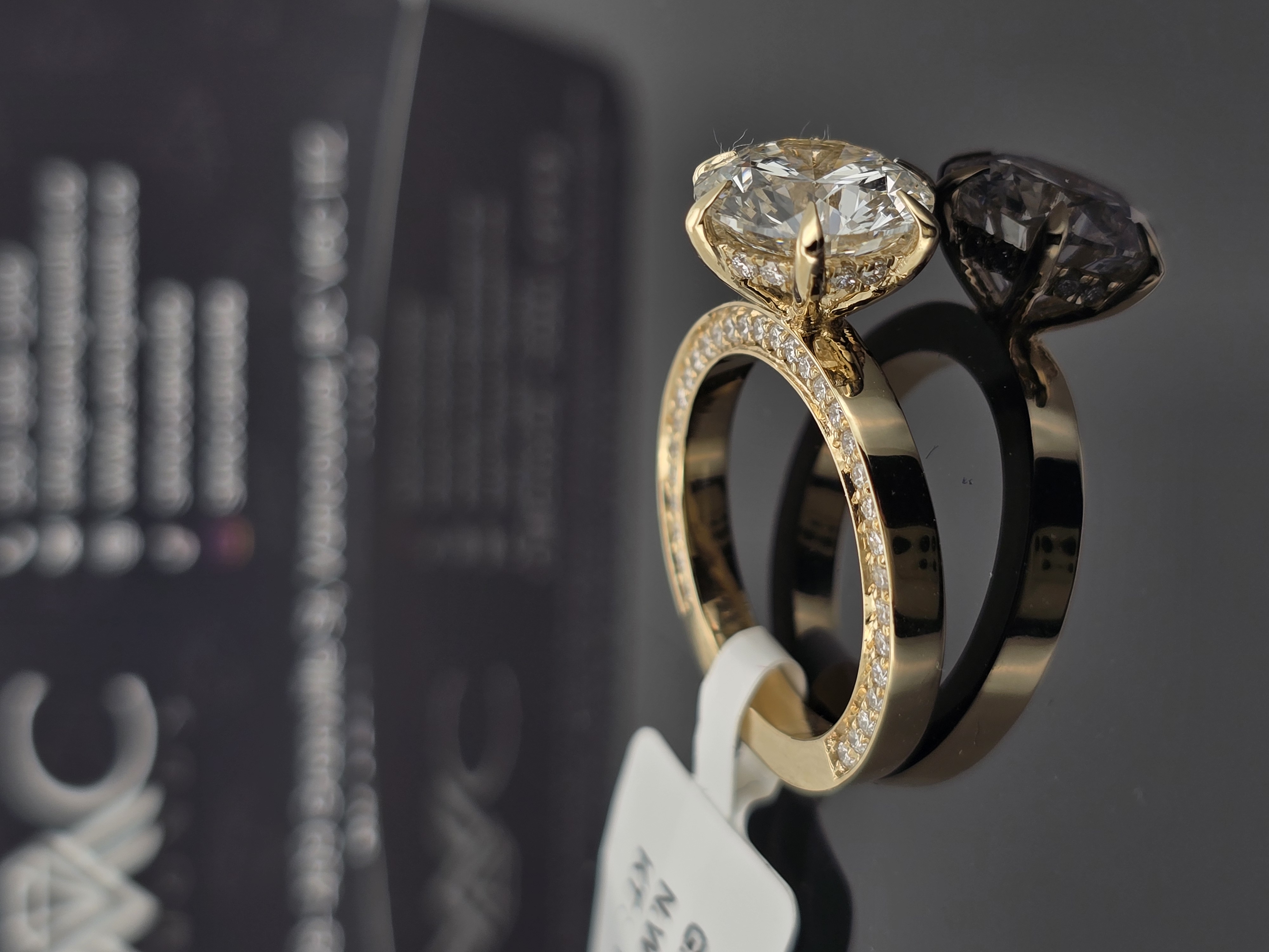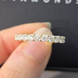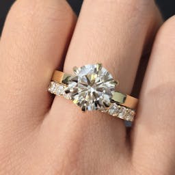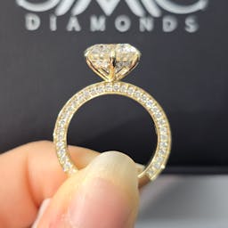 Setting: 6 prong setting, hidden halo, pave band 70% coverage on 1 side